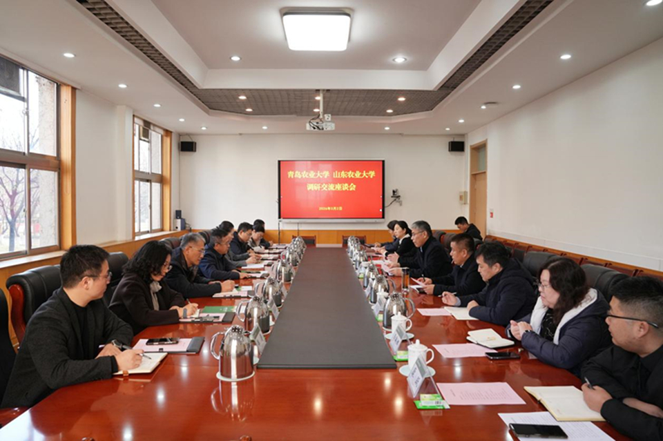 3月2日上午,孙庆杰一行前往山东农业大学调研交流,山东农业大学党委常委、副校长周玉玺接待并重点就学校“阶梯贯通式”人才培养模式改革、乡村振兴“百千万”实践服务体系构建以及“耕耘学堂”智慧教学平台的建设成效作了详细介绍。孙庆杰介绍了我校在持续推进“新农科”建设、开展教育数字化转型方面的若干实践。他指出,山东农业大学与青岛农业大学均扎根齐鲁大地,在服务乡村振兴战略中积累了丰富经验,希望双方在新农科教学体系构建、涉农专业交叉融合等方面深化合作,携手打造立足区域、面向全国的涉农人才培养高地。