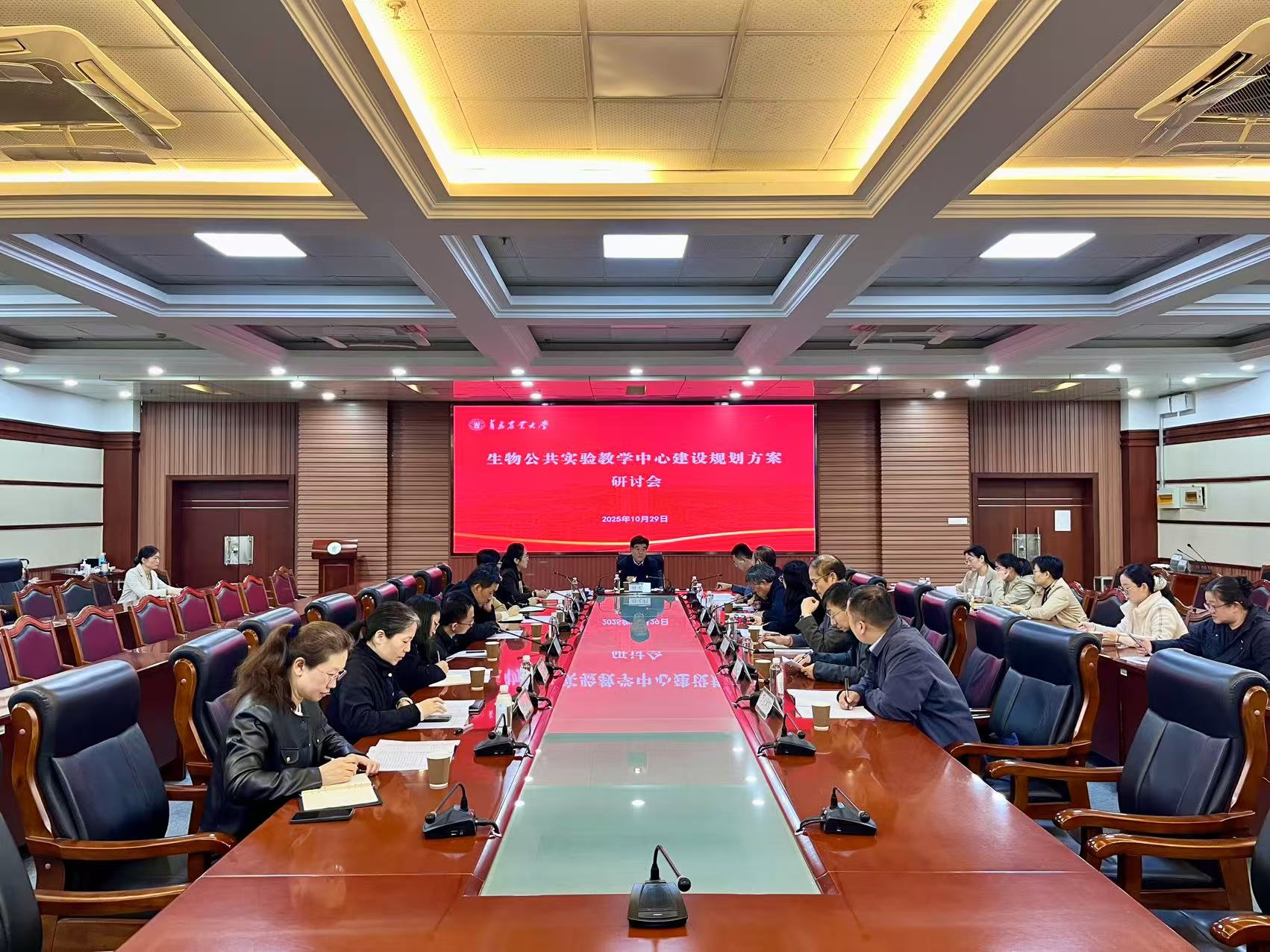 10月29日下午,我校在主楼三楼会议室召开生物公共实验教学中心建设规划方案研讨会,校党委副书记田义轲出席会议并与大家交流意见。教务处、实验室管理中心主要负责人,草业学院、动物科技学院、动物医学院等11个学院教学院长和相关教师参会。会议由教务处处长孙娟主持。