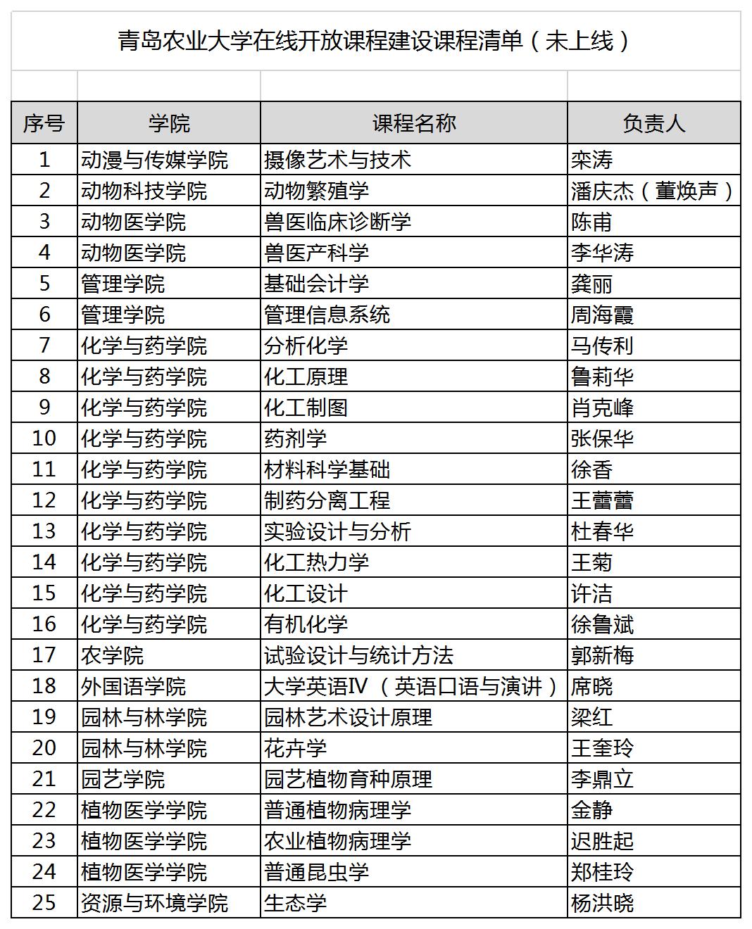 以下已完成线上课程录制还没有上线的课程负责老师请按要求完善课程并申报上线: